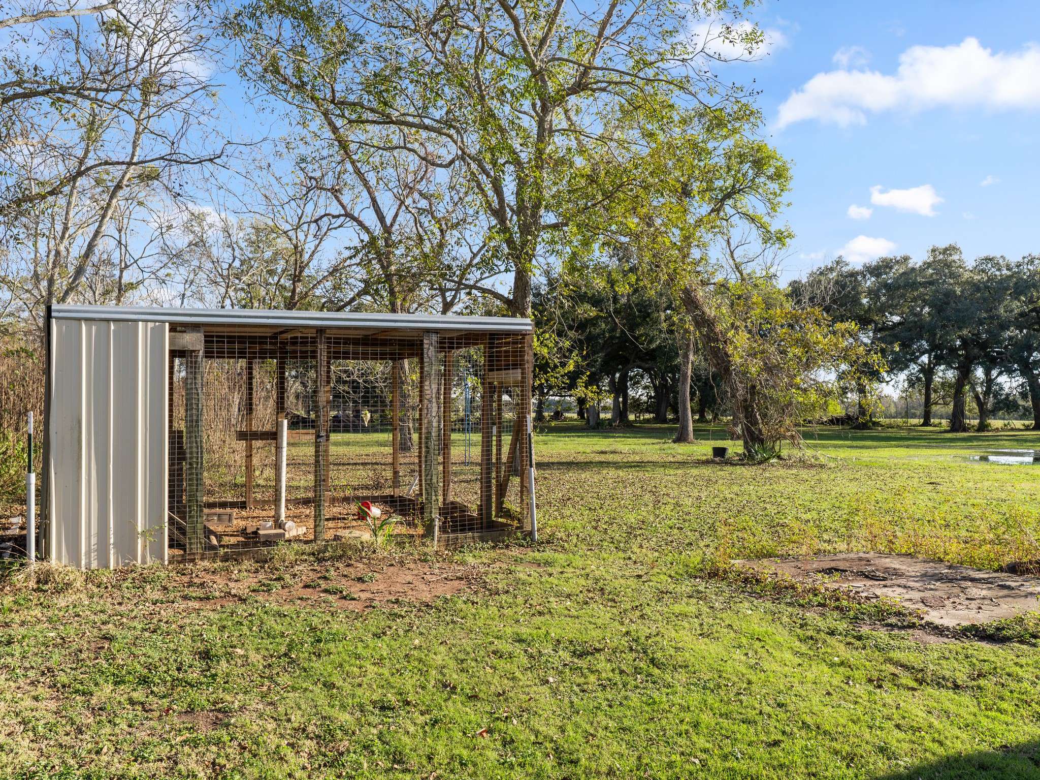 Situated in Van Vleck ISD across from the iconic KBar Ranch. This unique property features both a main house & a charming barndominium complete with a full bathroom- guest suite, office, game room, or man cave anyone? The home's open-concept layout features stunning vaulted ceilings & an abundance of natural light throughout, creating a warm & inviting atmosphere. The kitchen is equipped with stainless steel appliances, granite countertops, tile backsplash, & pantry. The split-bedroom design offers privacy, with each bedroom provided with direct access to the spacious back deck. There's an XL utility room with ample cabinet storage & the home is wired for JEC fiber internet for your convenience. Enjoy scenic views from the back deck, where abundant wildlife can often be seen. The versatile concrete pad underneath the home provides space for parking, storage, and entertaining. The barndo has a climate controlled storage room, plus there's a 2 car detached garage for additional storage!